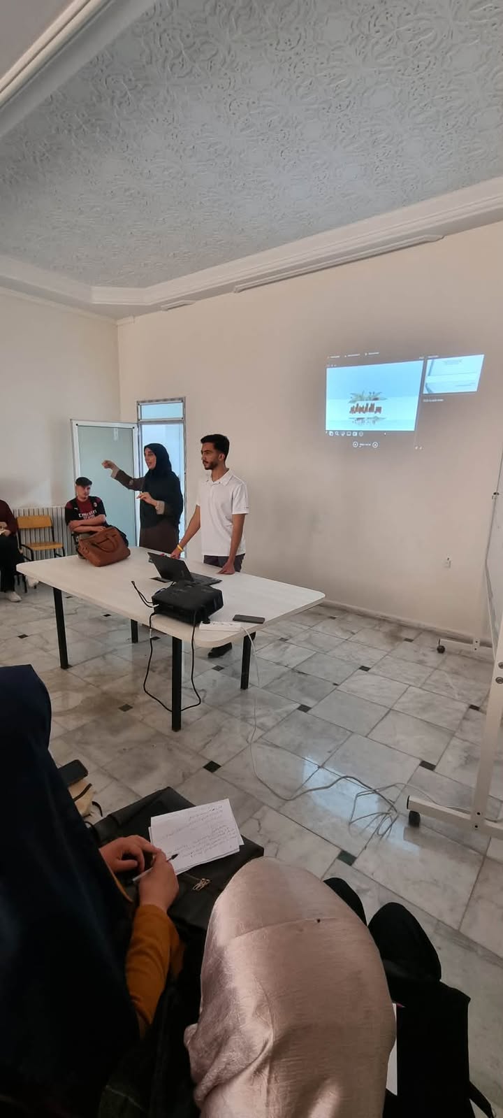 في اطار مرافقة الطلبة الموجهين ضمن الفرار 1275 المعدل والمتمم بالقرار 008، تم تنظيم جلسات تدريبية حول المادة التعليمية الاولى – أساسيات المقاولاتية-، اين تلقى الطلبة المقاولين معارف حول صفات المقاول الناجح، كما تلقو تدلريبات حول كيفية القيام بتحليل (SWOT)، ونموذج العمل التجاري(BMC).