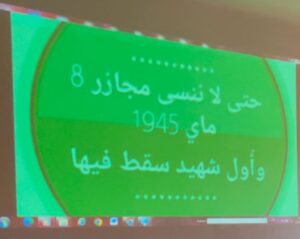 نظم صبيحة يوم الاثنين 05 ماي 2025 نادي الأصالة و التواصل بكلية الحقوق والعلوم السياسية بالشراكة مع مخبر البحوث القانونية السياسية والشرعية ندوة علمية حول مجازر 8 ماي 1945″ مسؤولية الاستعمار الفرنسي بين الذاكرة التاريخية والمساءلة القانونية” برئاسة د/ سميحة مناصرية واشراف أد/ زواقري الطاهر عميد الكلية