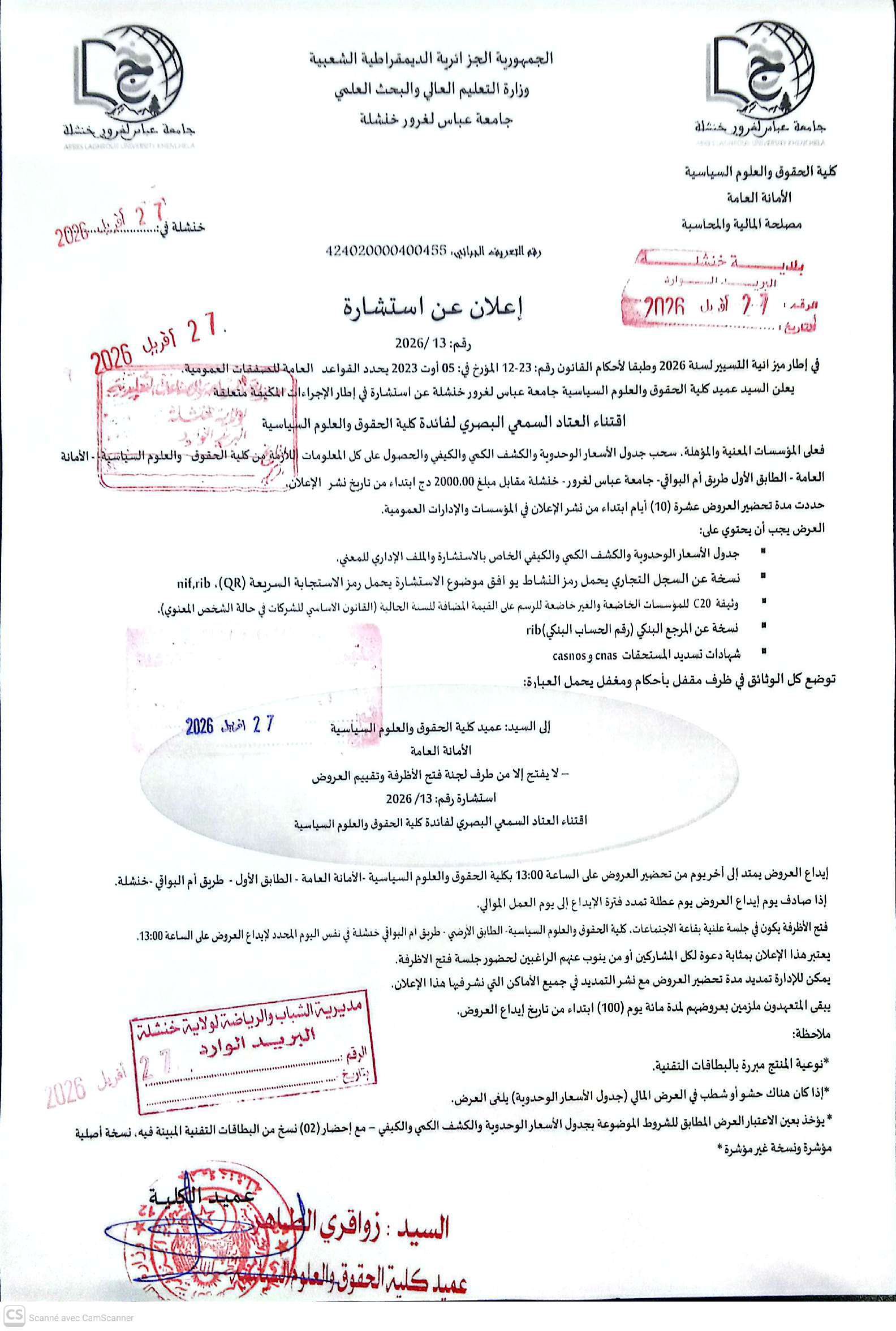 إعلان عن إستشارة رقم 13