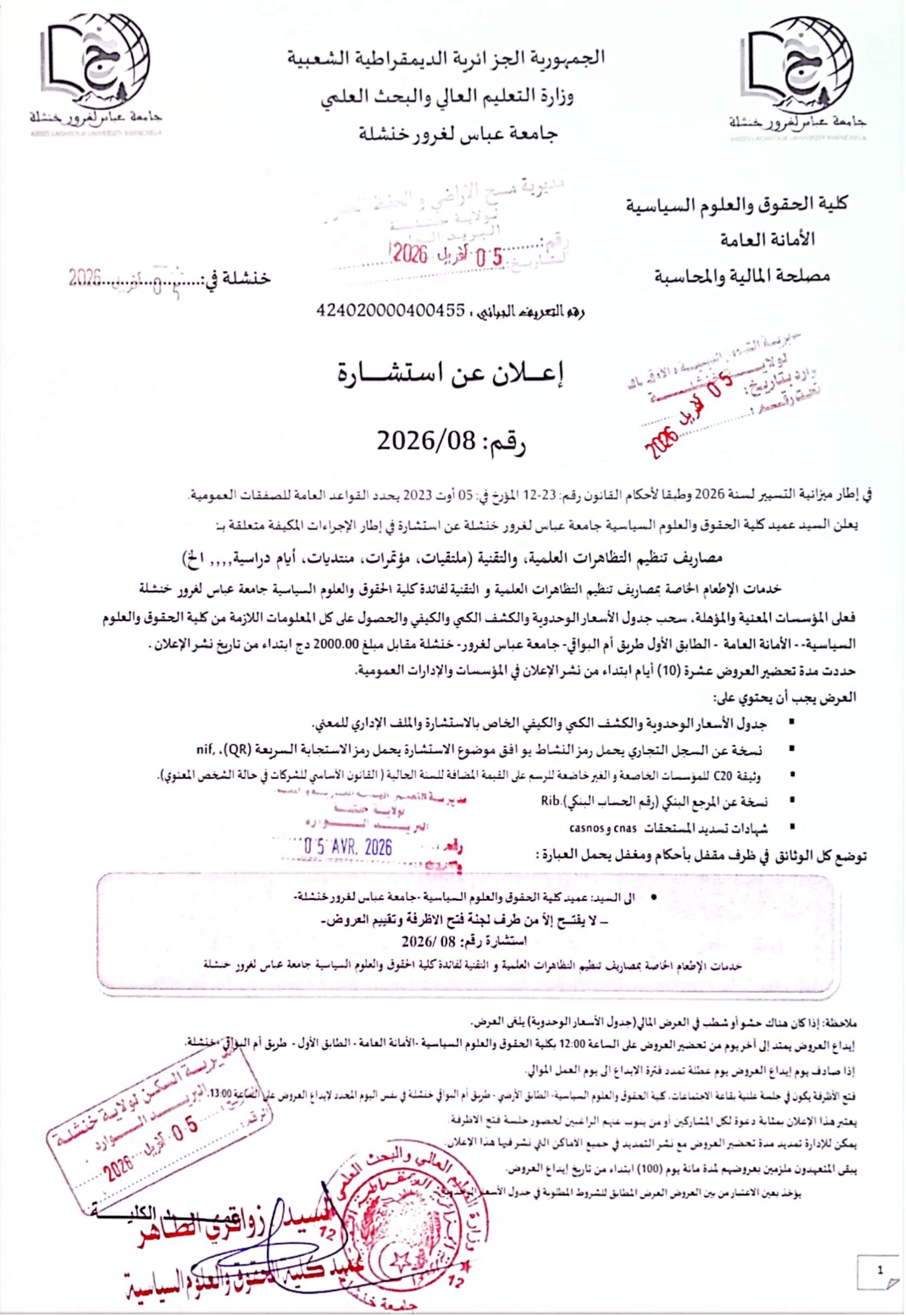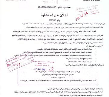 إعلان عن إستشارة رقم 2026/08