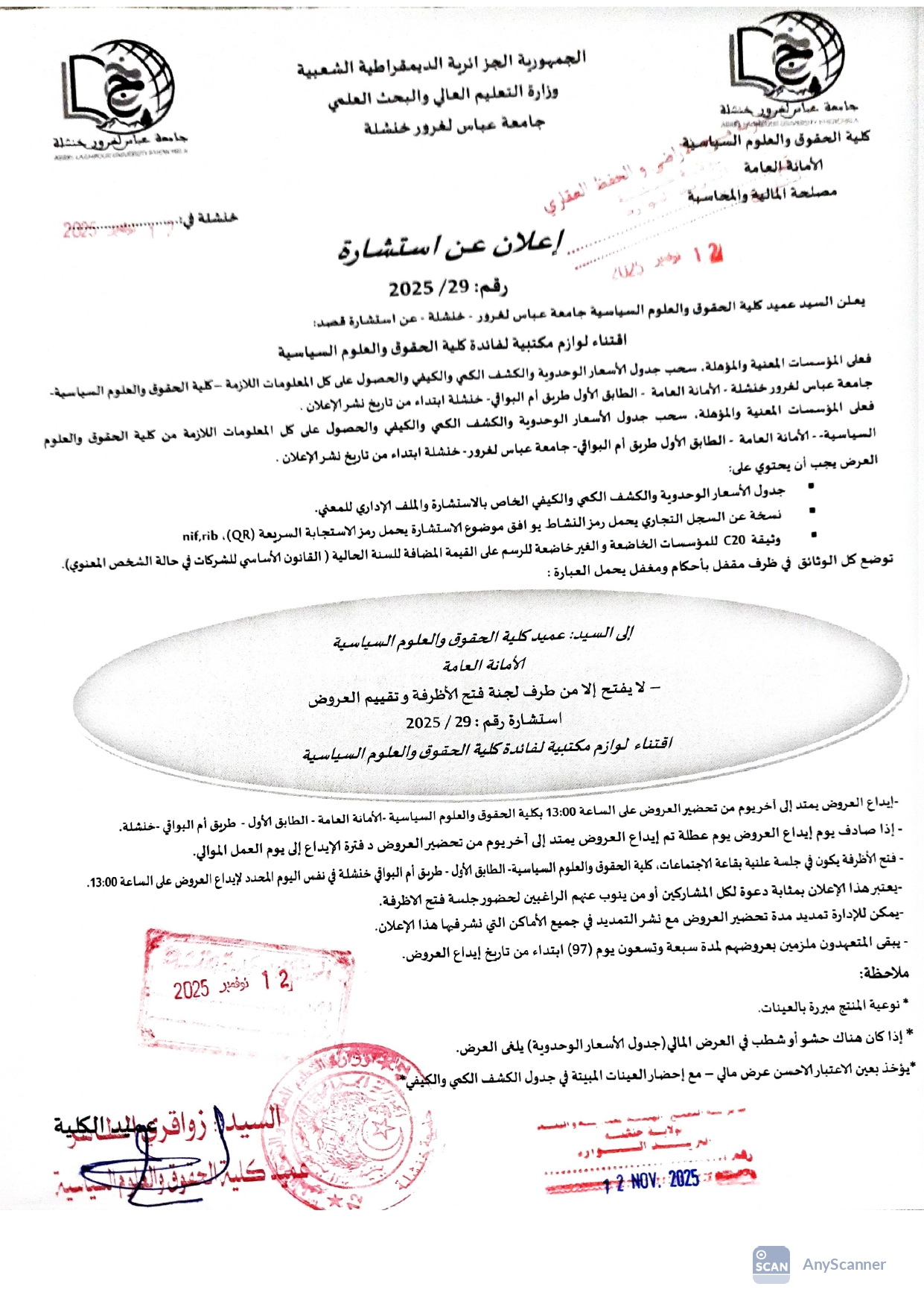 إعلان عن المنح المؤقت للاستشارة رقم 25/2025