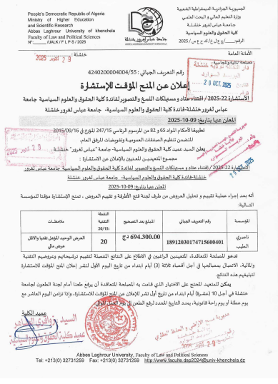 إعلان عن المنح المؤقت للإستشارة 22-2025