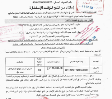 إعلان عن المنح المؤقت للإستشارة 20-2025