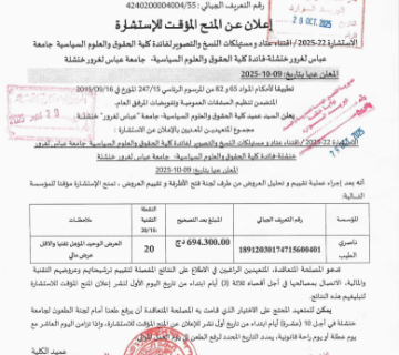 إعلان عن المنح المؤقت للإستشارة 22-2025