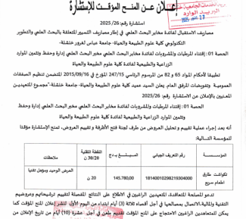 اعلان عن المنح المؤقت للاستشارة رقم:26ح2025/2