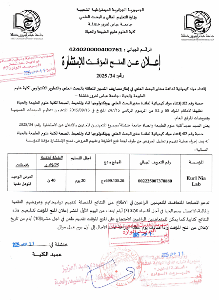 اعلان عن المنح المؤقت للاستشارة رقم:34/2025