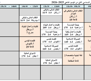 التوزيع الزمني الاسبوعي للسداسي الثاني من الموسم الجامعي 2025-2026 سنة اولى ماسترمحاسبة