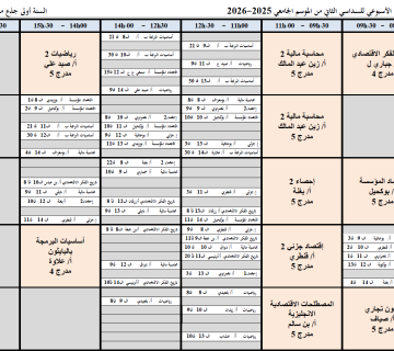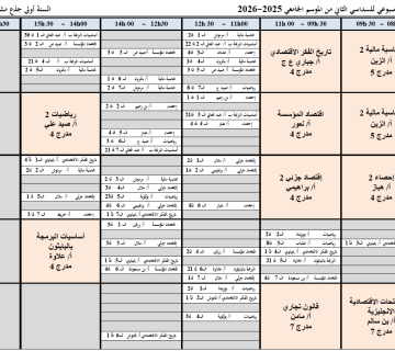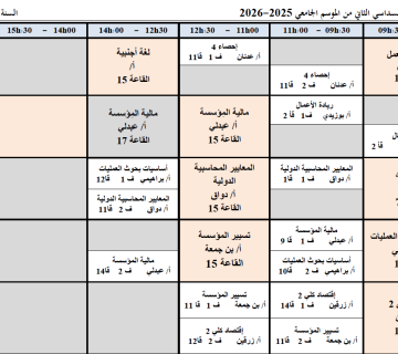 التوزيع الزمني الاسبوعي للسداسي الثاني من الموسم الجامعي 2025-2026 سنة ثانية علوم التسيير