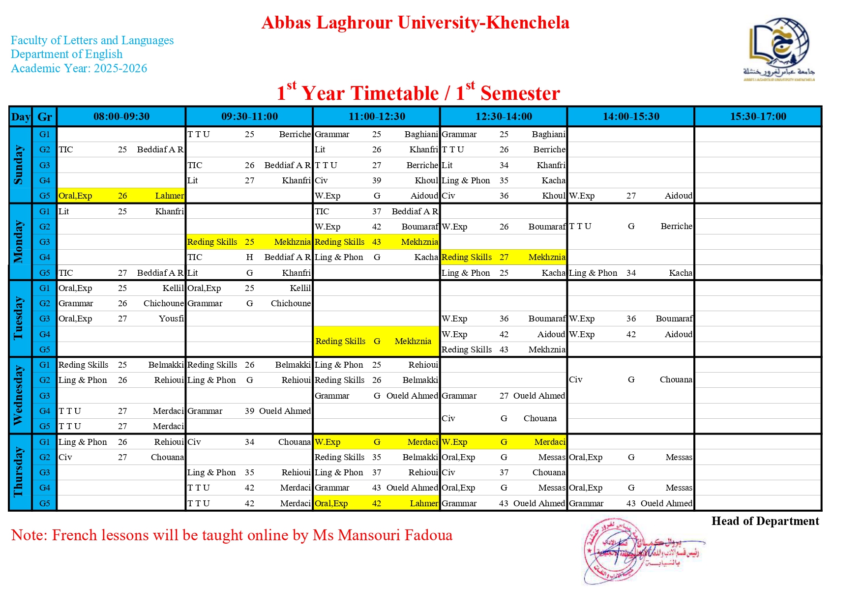 توزيع-زمني-قسم اللغة الانجليزية-ل1