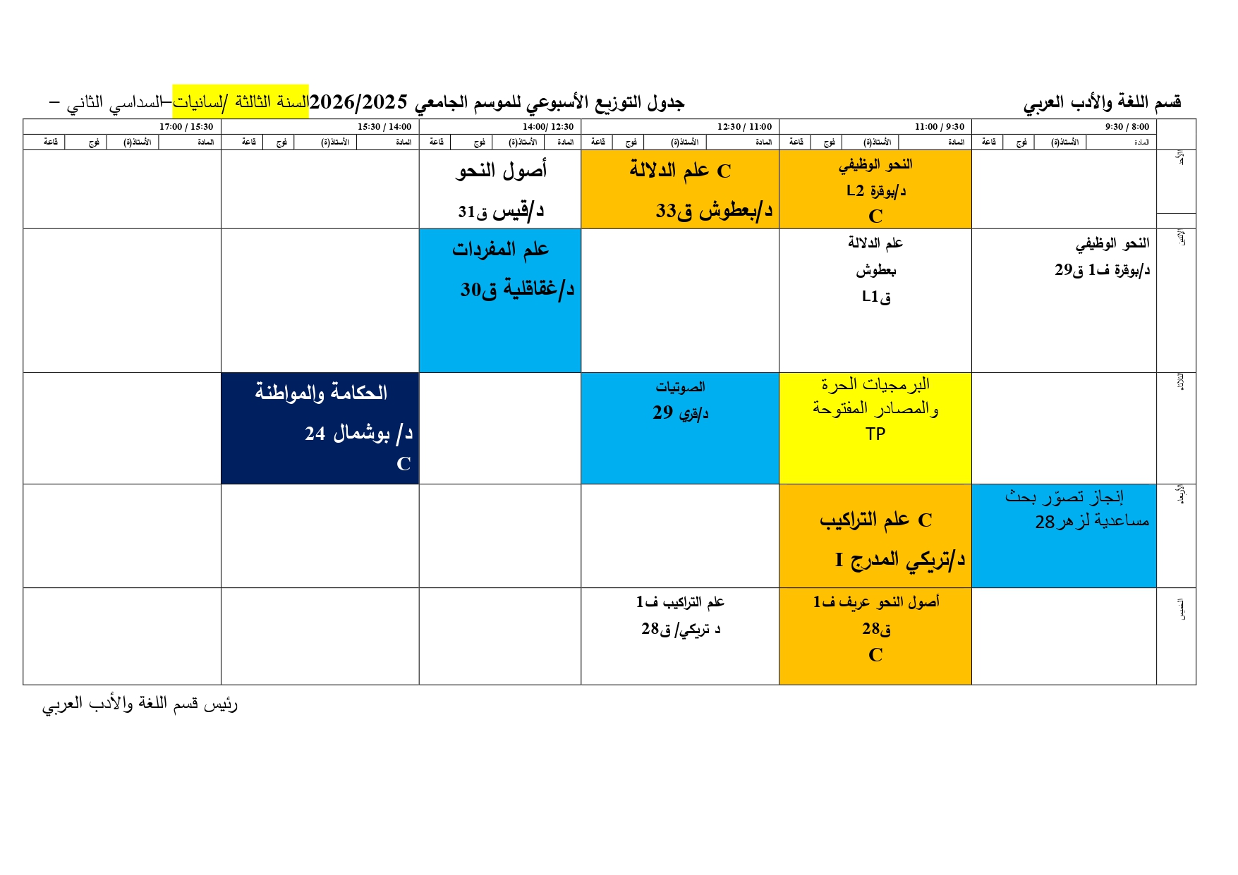 توزيع-زمني-قسم اللغة والأدب العربي-ل3