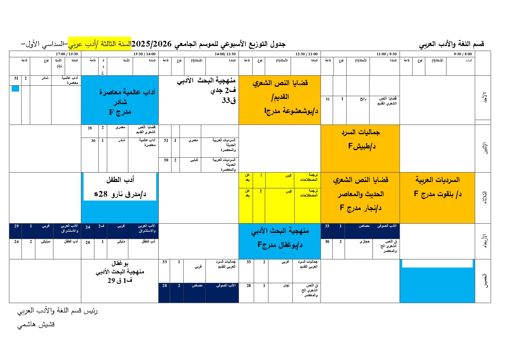 توزيع-زمني-قسم اللغة والأدب العربي-ل3