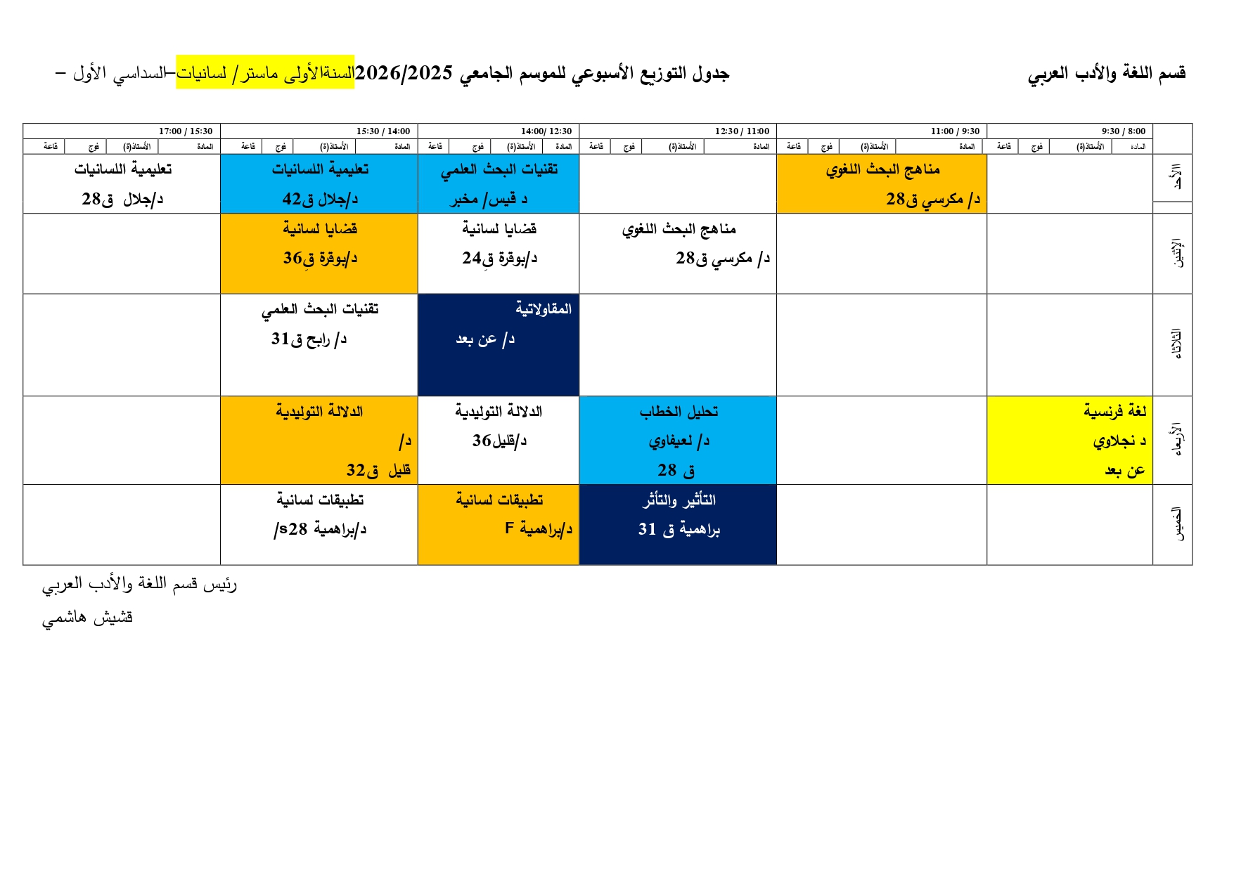 التوزيع الزمني للسداسي الأول 2026/2025 M1 لسانيات