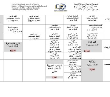 • سابقالتوزيع الزمني الأسبوعي للسداسي الاول من الموسم الجامعي 2025-2026 السنة الثانية علوم تجارية