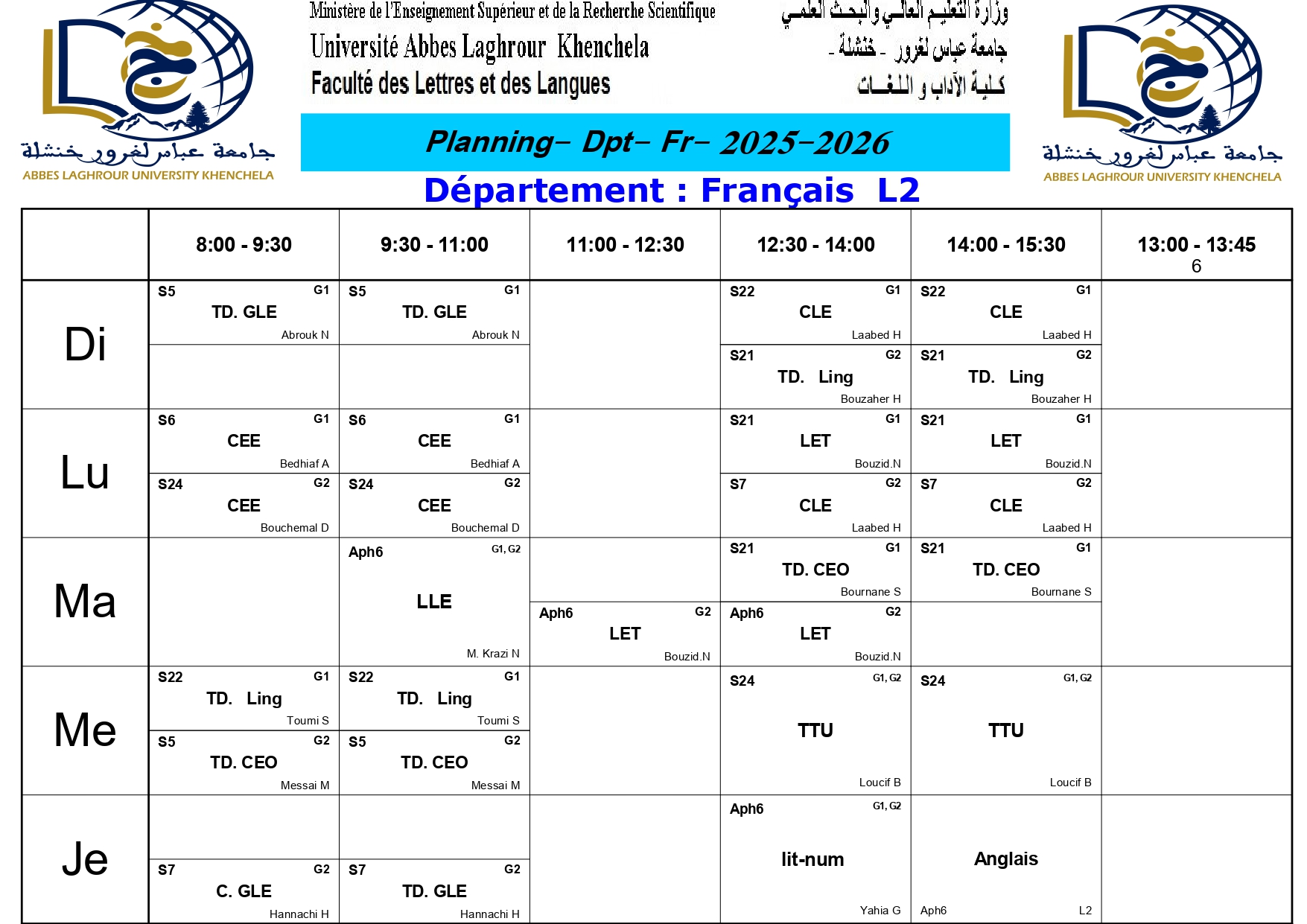 • التاليالتوزيع الزمني للسداسي الاول L3