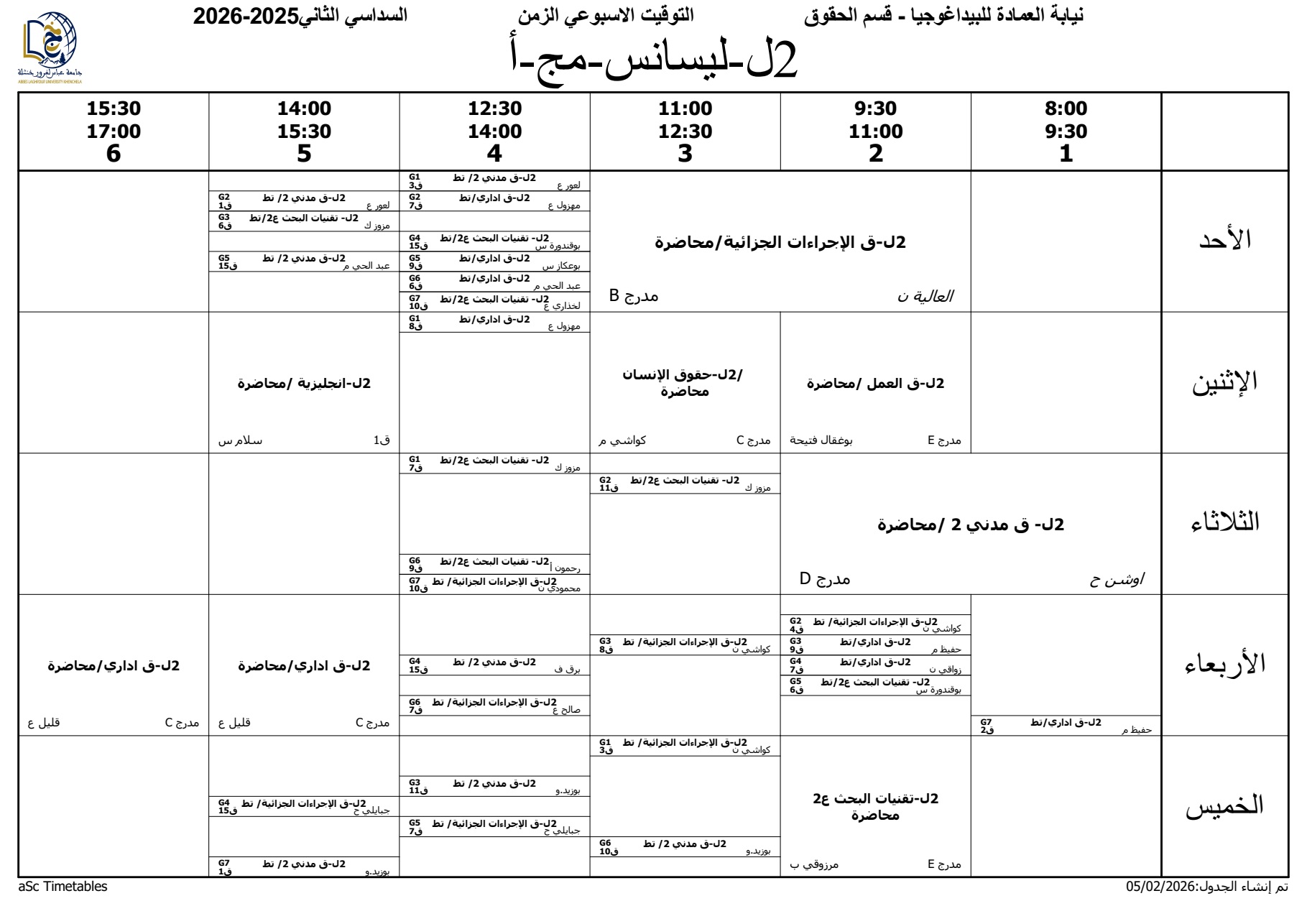 التوقيت الاسبوعي حقوق – سنة ثانية ليسانس مج -ب-