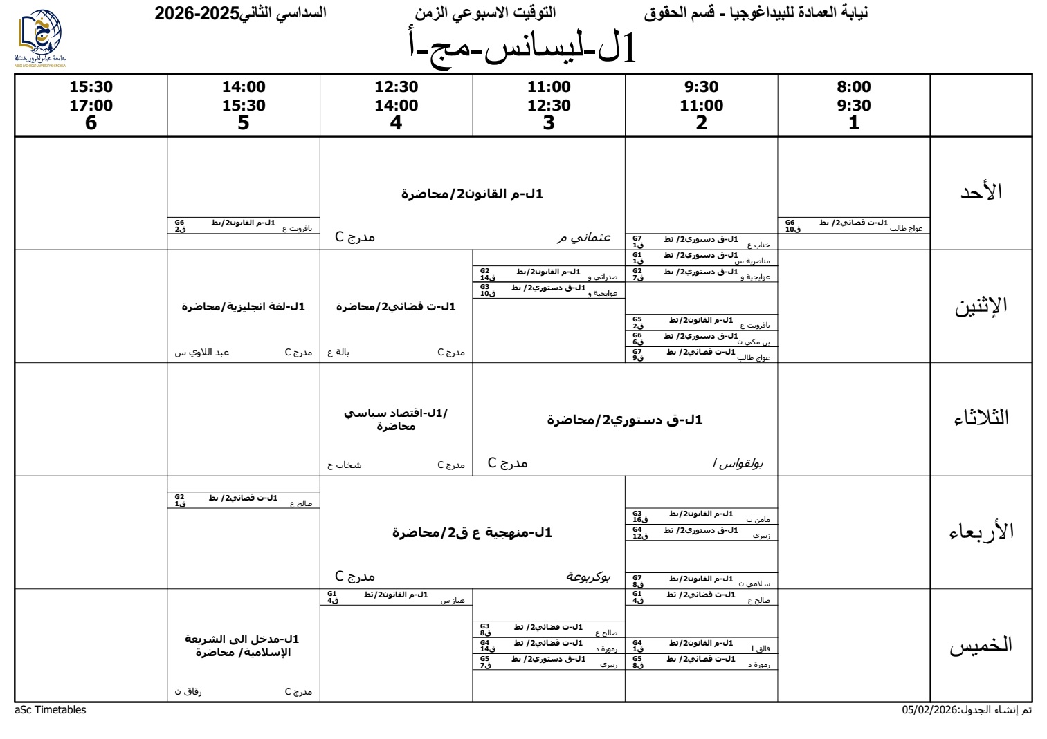 التوزيع الزمني للسداسي الثاني 2026/2025
