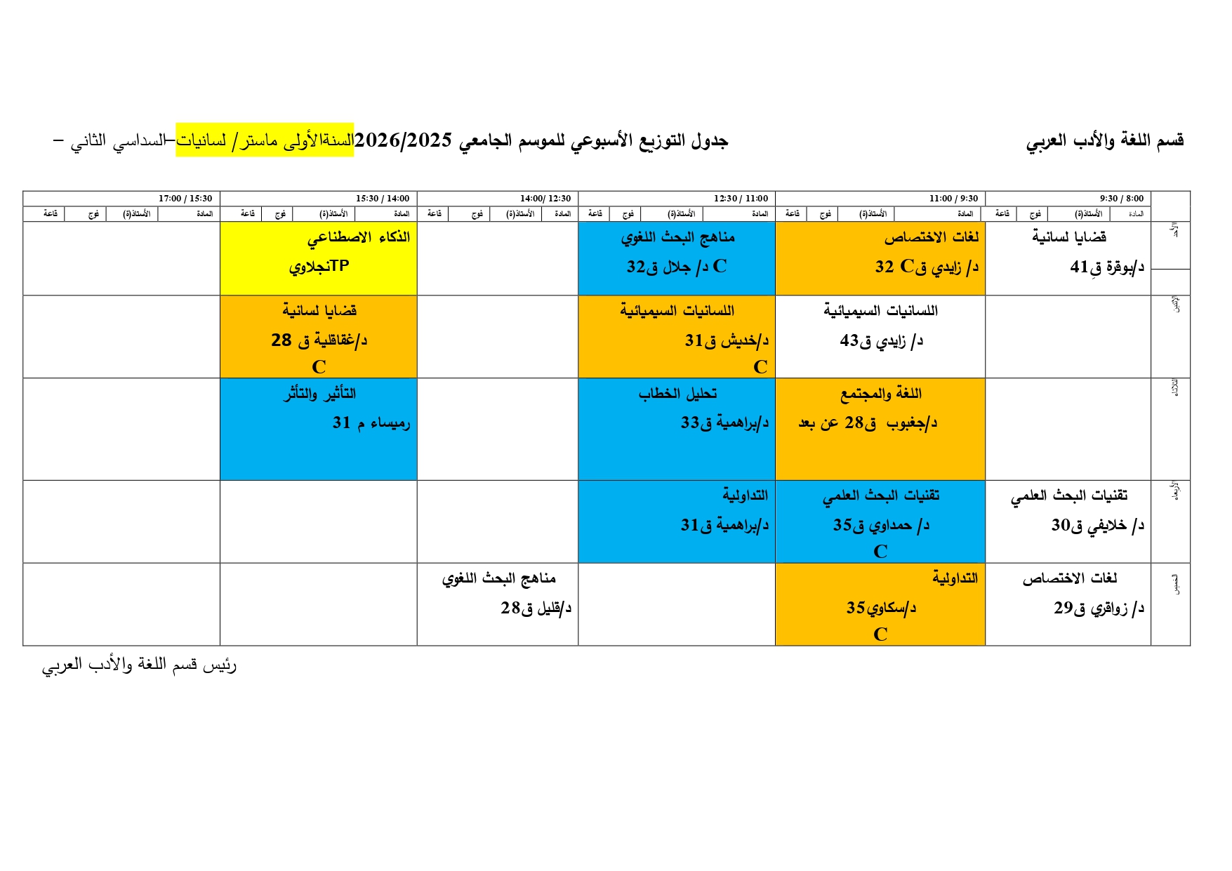 توزيع-زمني-قسم اللغة والأدب العربي-M1