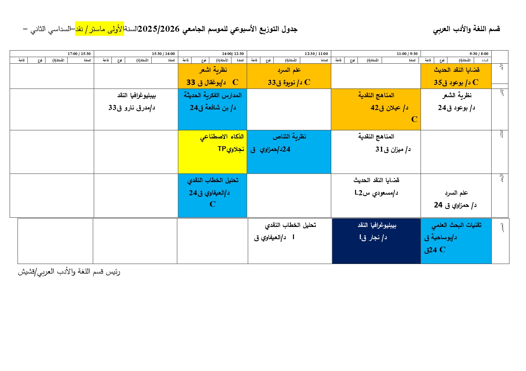 التوزيع الزمني M1 نقد للسداسي 2- 2026/2025