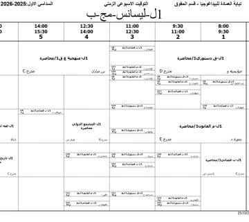 التوقيت الاسبوعي حقوق – سنة أولى ليسانس مج -ب-