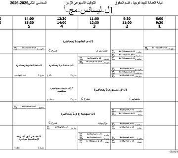التوقيت الاسبوعي حقوق – سنة أولى ليسانس مج -ب-