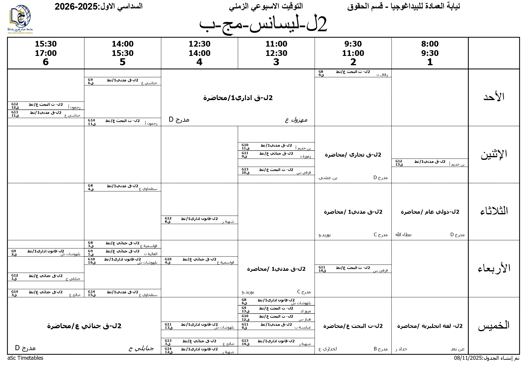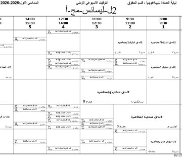 التوقيت الاسبوعي حقوق – سنة ثانية ليسانس مج -ب-