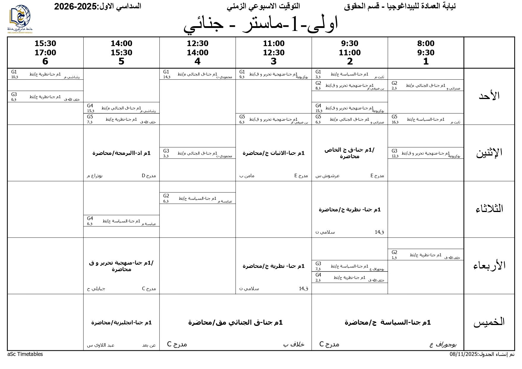 التوقيت الاسبوعي حقوق سنة 1ماستر – قانون جنائي –