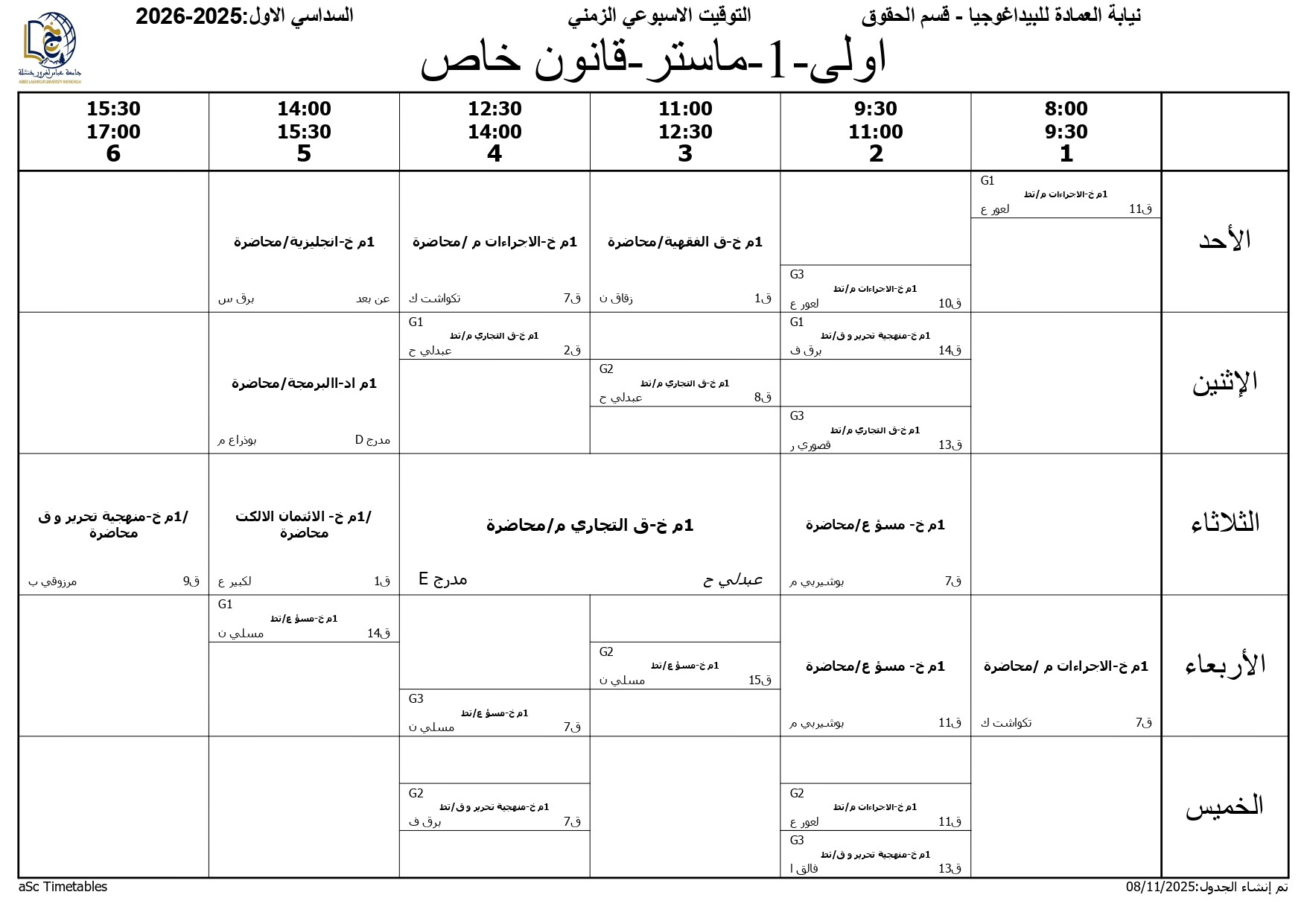 • سابقالتوقيت الاسبوعي حقوق سنة 1ماستر – دولة و مؤسسات –