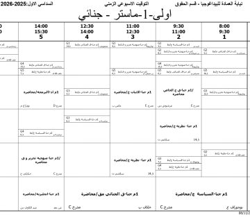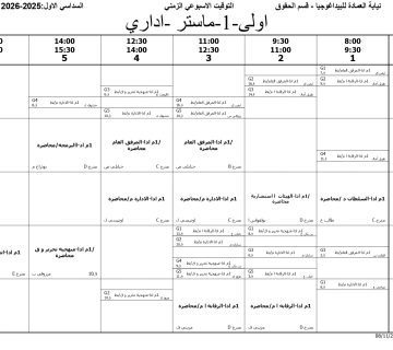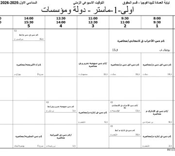• سابقالتوقيت الاسبوعي حقوق سنة 1ماستر – دولة و مؤسسات –