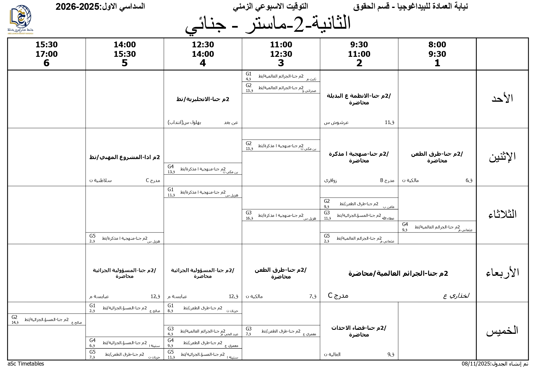 التوقيت الاسبوعي حقوق سنة 2ماستر – قانون جنائي –