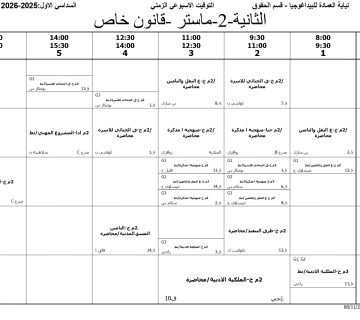 التوقيت الاسبوعي حقوق سنة 2ماستر – قانون خاص –