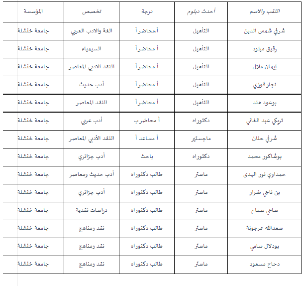 • إنشاء خطاب         نقدي حداثي يسترشد بالنظريات الجديدة في مقاربة قضايا اللغة والأدب  المعاصرين.