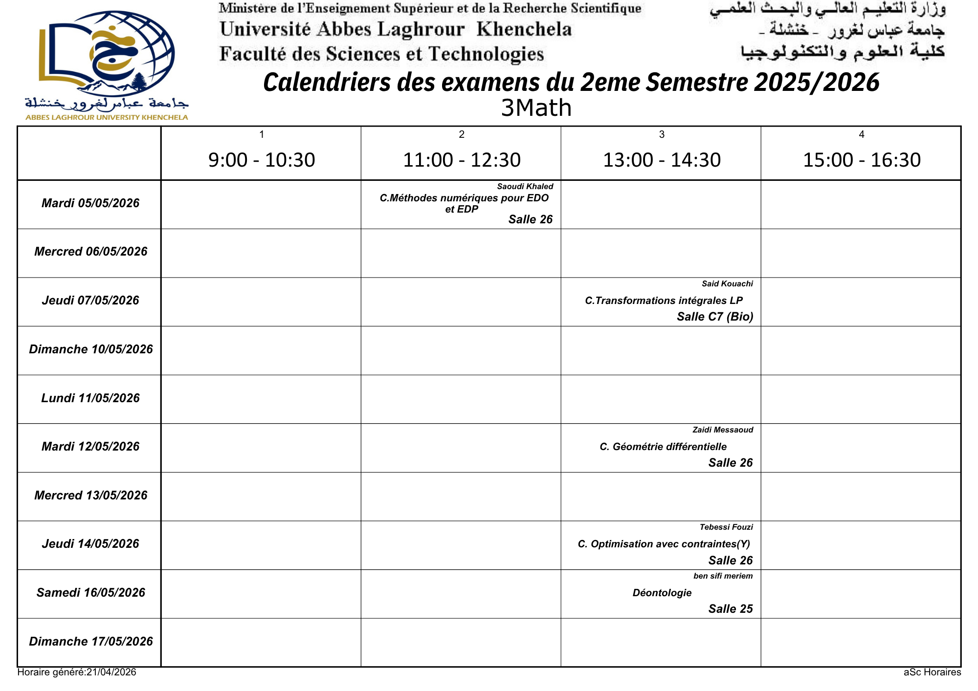 برنامج الإمتحانات-قسم الرياضيات -ل3