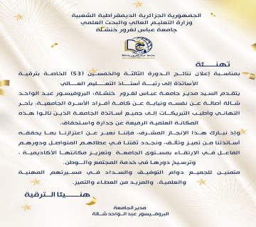 تعلن جامعة عباس لغرور خنشلة عن فتح باب الترشح للاستفادة من برنامج الحركية قصيرة المدى بالخارج بعنوان السنة المالية 2026 لفائدة الأساتذة الباحثين، طلبة الدكتوراه غير الأجراء والموظفين التقنيين والإداريين ابتداءا من يوم:05 فيفري2026إلى غاية يوم: 19 فيفري 2026 (الساعة منتصف الليل). يتم الترشح حاليا وفق معايير الانتقاء المحددة في القرار الوزاري رقم 255 المؤرخ في 25 فبراير2024 .