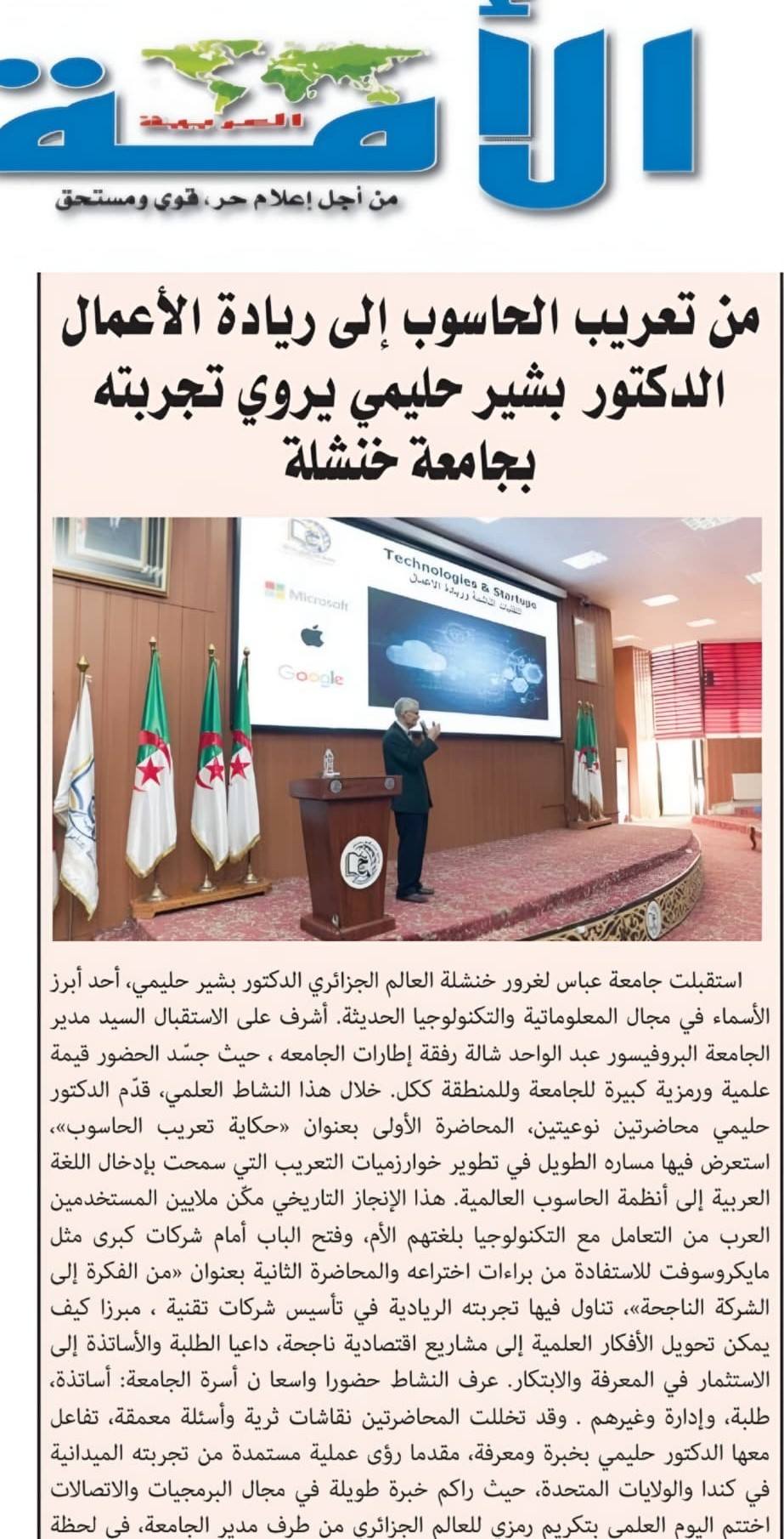 تغطية إعلامية لقناة البلاد – فعاليات النشاط العلمي الذي استضافت فيه جامعة عباس لغرور خنشلة تحت إشراف السيد مدير الجامعة؛ العالم الجزائري بشير حليمي صحافة