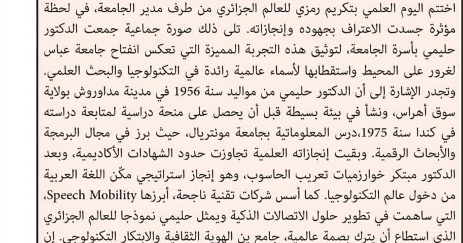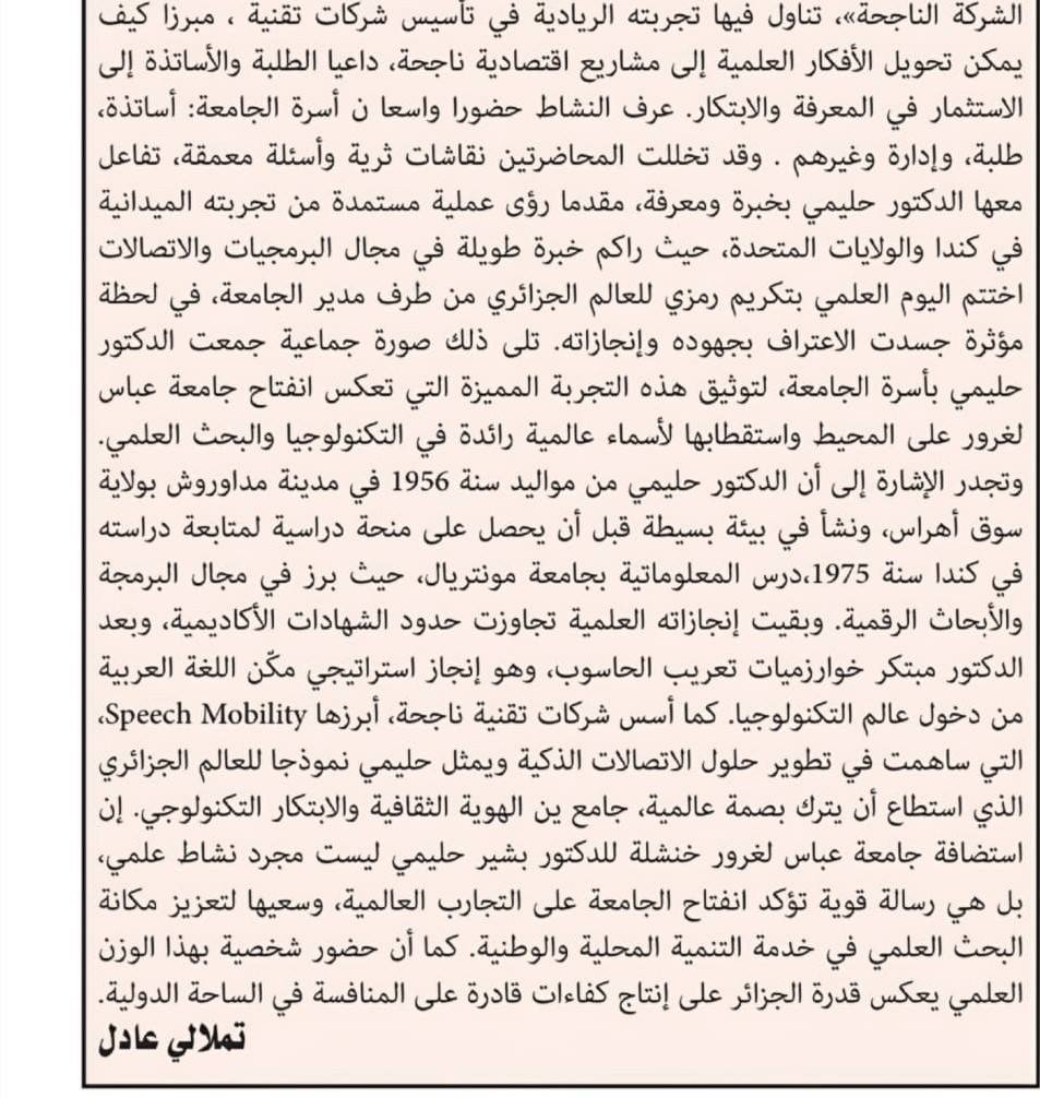 تغطية إعلامية لقناة الشروق – فعاليات النشاط العلمي الذي استضافت فيه جامعة عباس لغرور خنشلة تحت إشراف السيد مدير الجامعة؛ العالم الجزائري بشير حليمي – صحافة