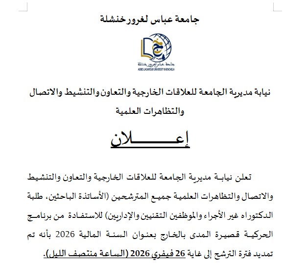 إعلان عن تمديد فترة الترشح لتربص2026