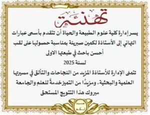 تهنئة بمناسبة التتويج بلقب أحسن باحث