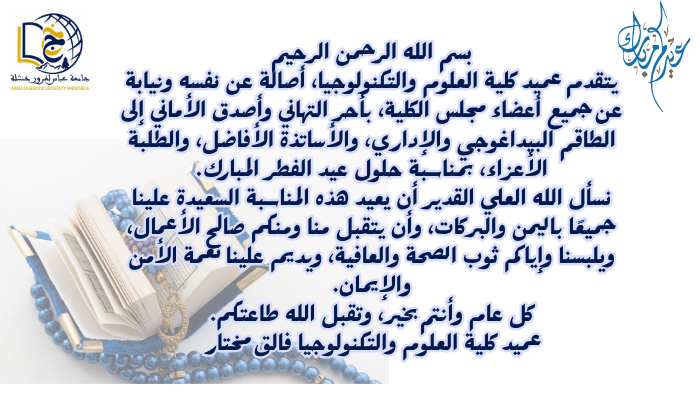 تهنيئة عميد كلية العلوم و التكنولوجيا بمناسبة عيد الفطر المبارك