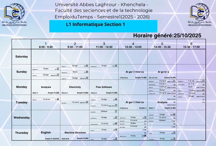 توزيع-زمني-قسم الاعلام الالي -ل1 تعديل 25/10/2025