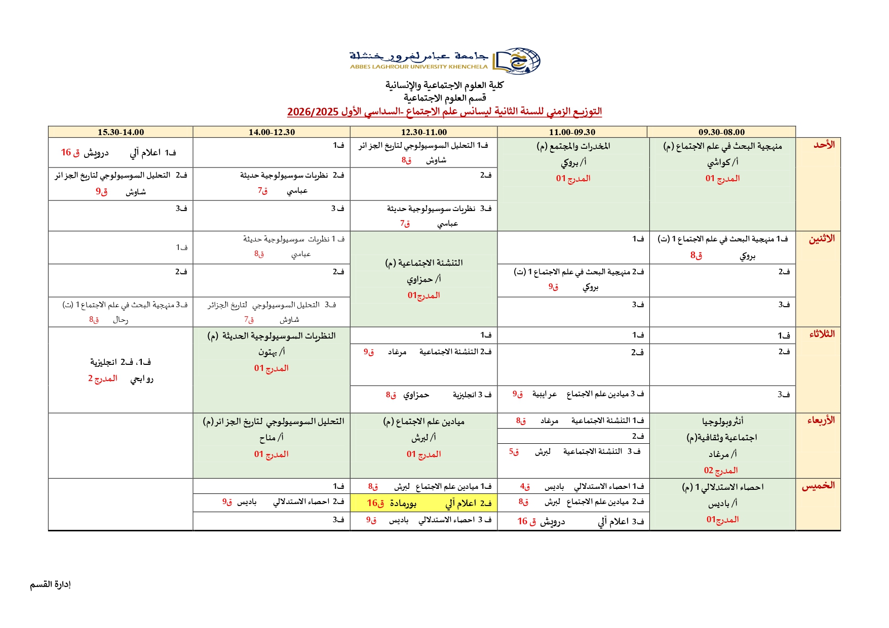 توزيع-زمني-قسم العلوم الاجتماعية -ل2