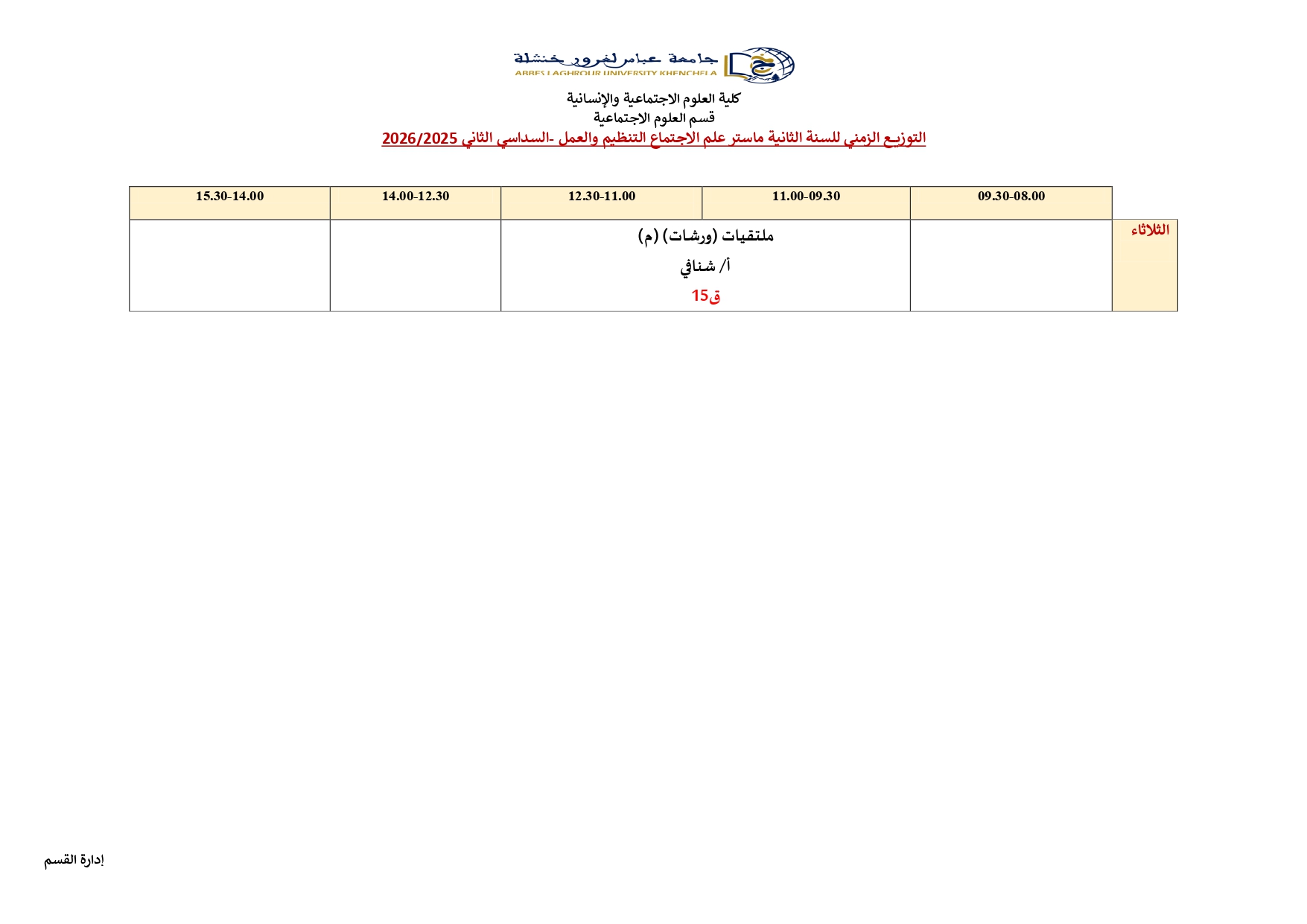 • سابقتوزيع-زمني-قسم العلوم الاجتماعية-M2 حضري