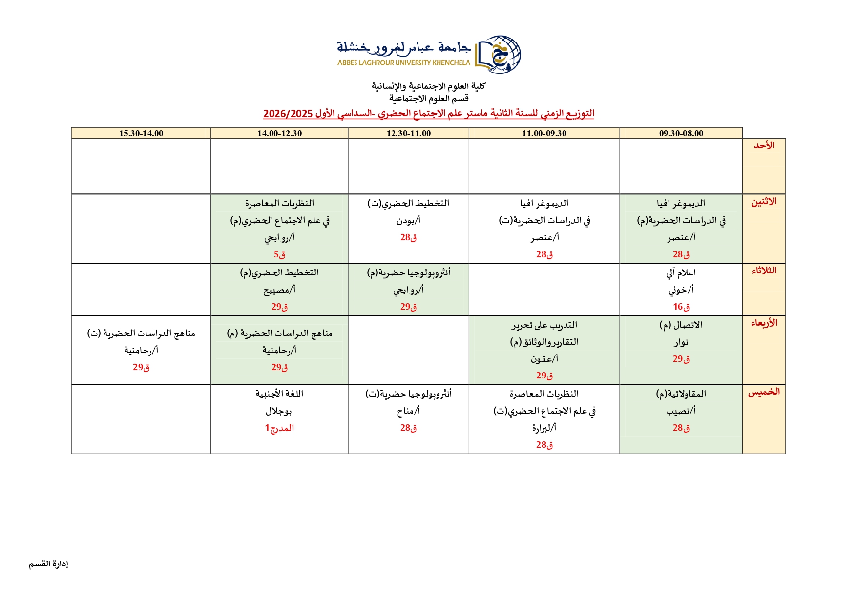 توزيع-زمني-قسم العلوم الاجتماعية-M2 علم الاجتماع الحضري