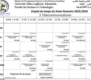 التوقيت الاسبوعى للسداسي الثاني 2025-2026