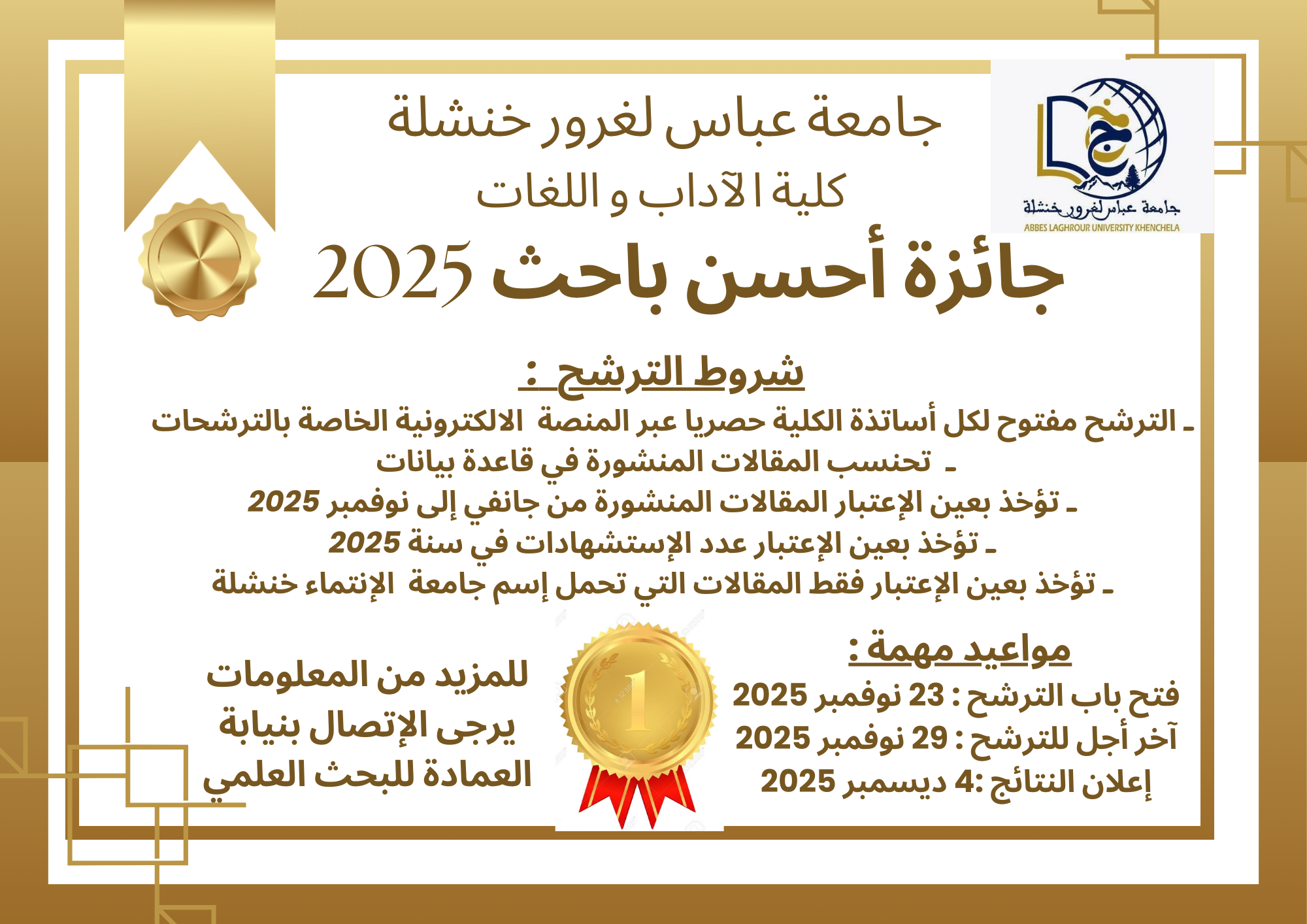 جــــــــائزة أحســـــن باحث لسنــــــــة 2025