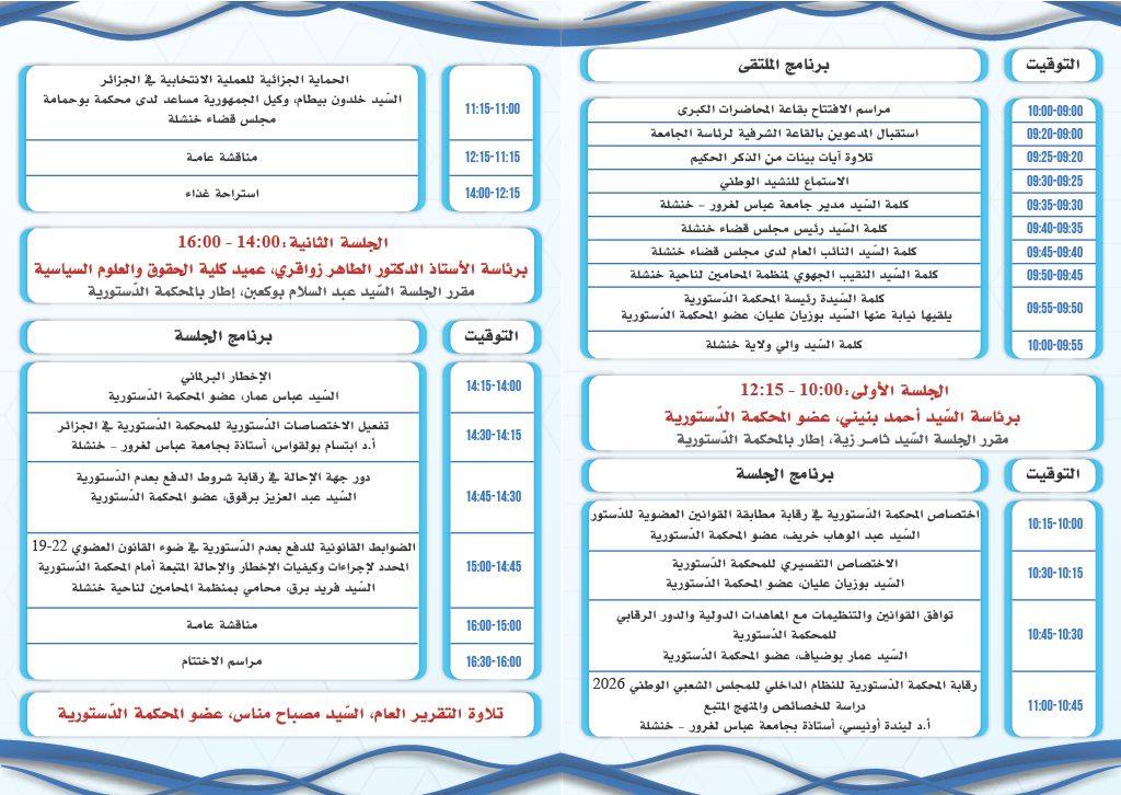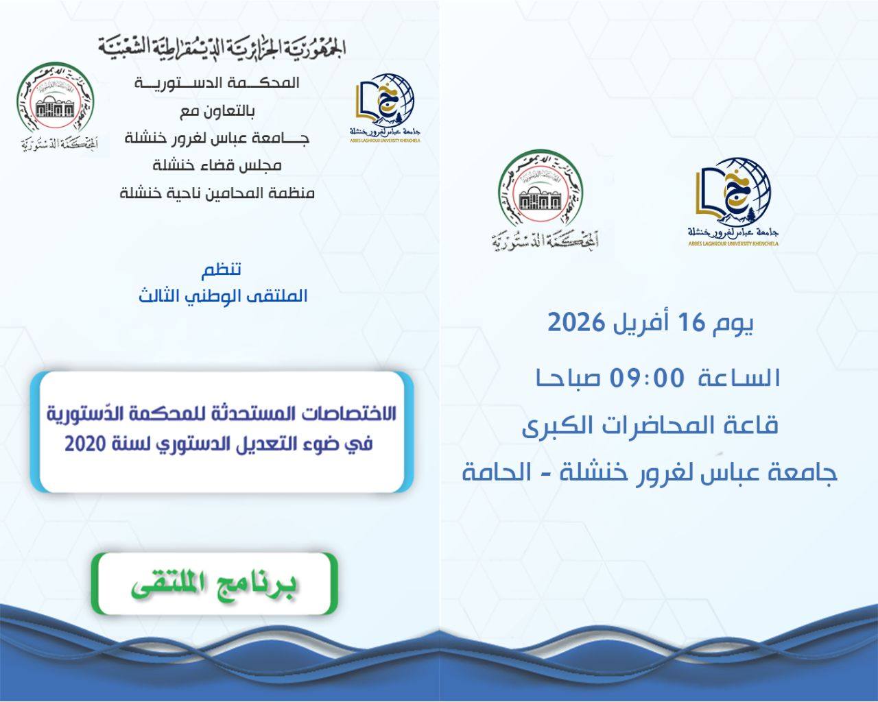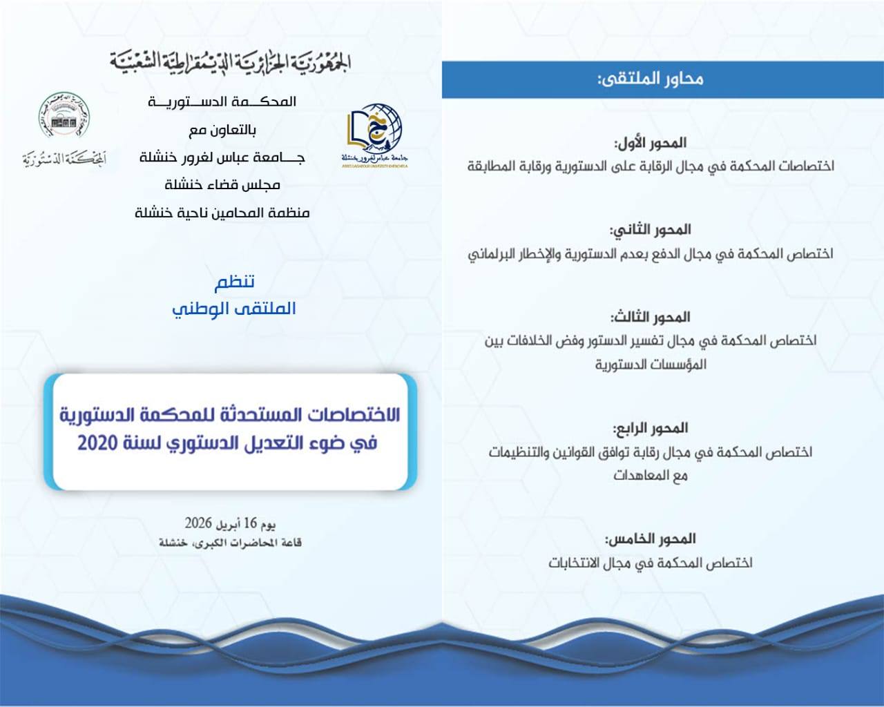 🔹 المحكمة الدسـتورية بالتعاون مع جـامـعة عبـاس لغـرور خنشلة، مجلس قضاء خنشلة، منظمة المحامين ناخية خنشلة