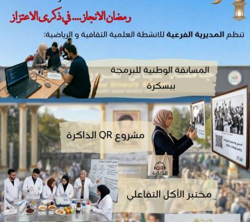 تحت إشراف المديرية الفرعية للانشطة العلمية الثقافية والرياضية جامعة خنشلة ؛ نظم نادي – الفنون الصوتية الجامعي- يومي 10/09 فيفري 2025؛ دورة تكوينية في مجال التعليق الصوتي أطرها كل من د. شهرزاد سوفي والأستاذ حسام عرعار.
