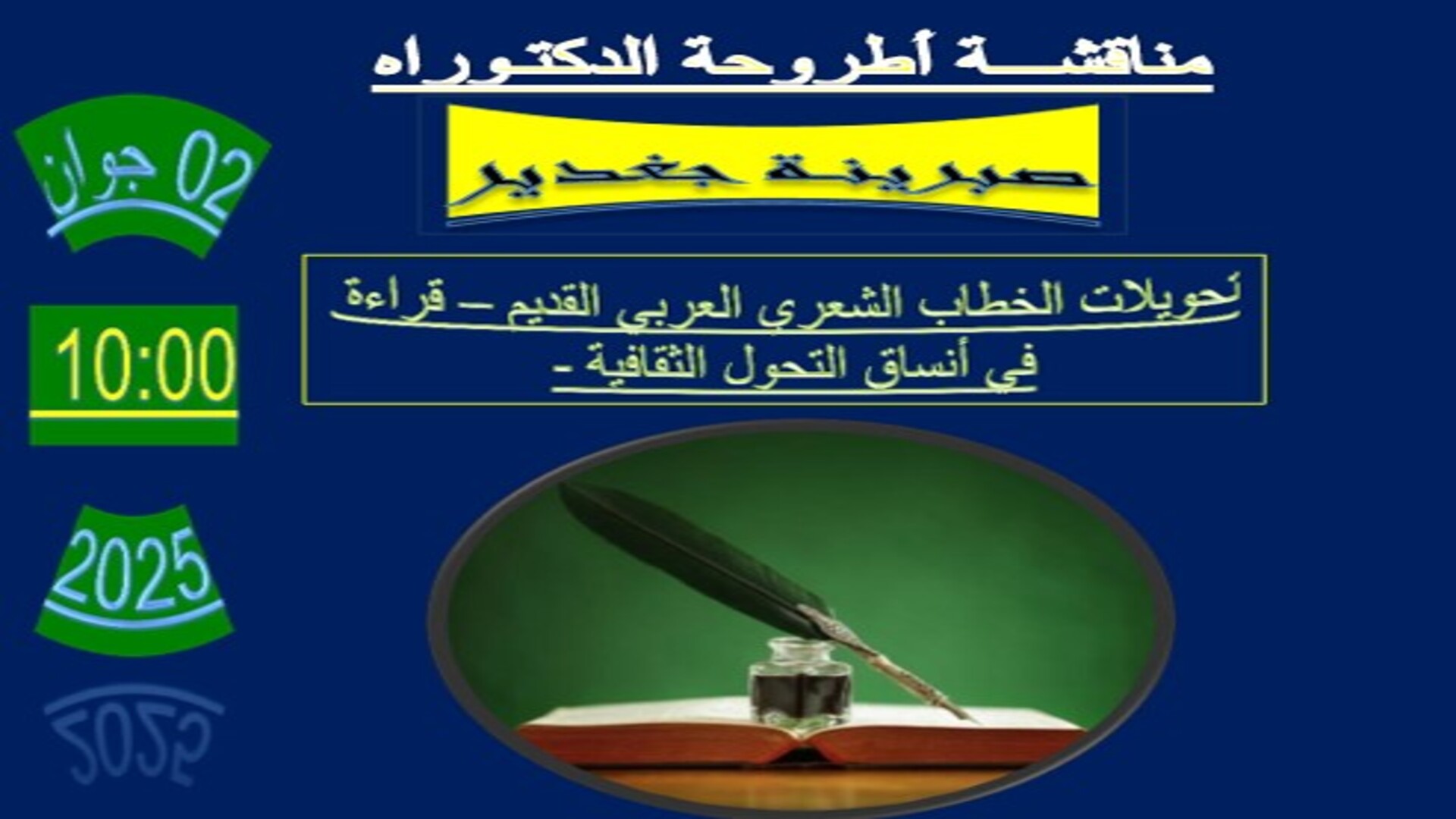 مناقشة أطروحة الدكتوراه Lmd الطالبة/ صبرينة جغدير