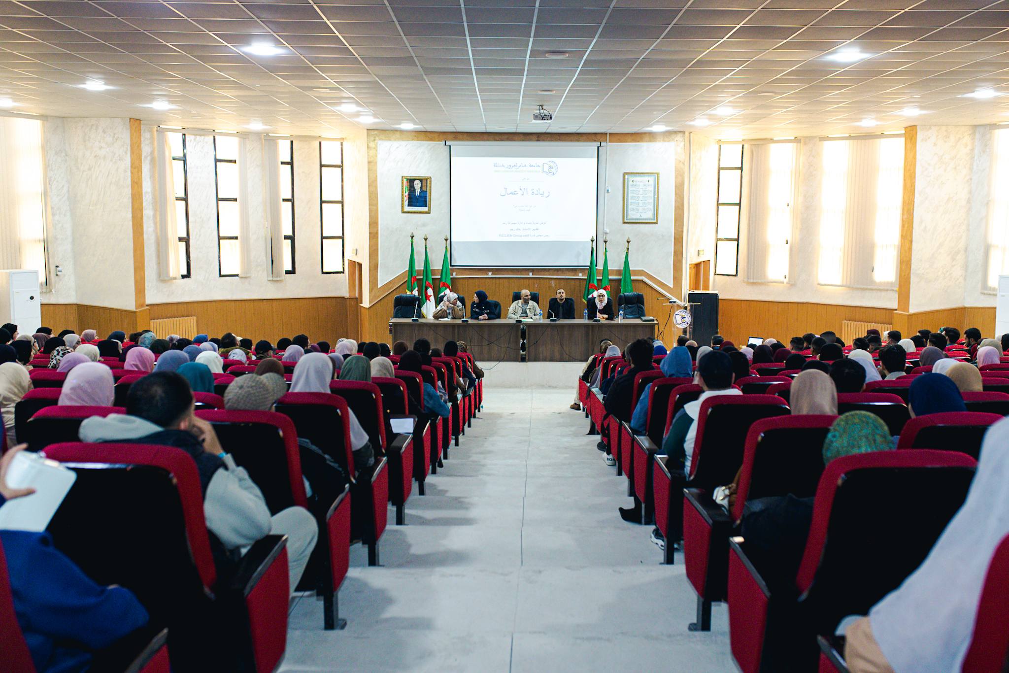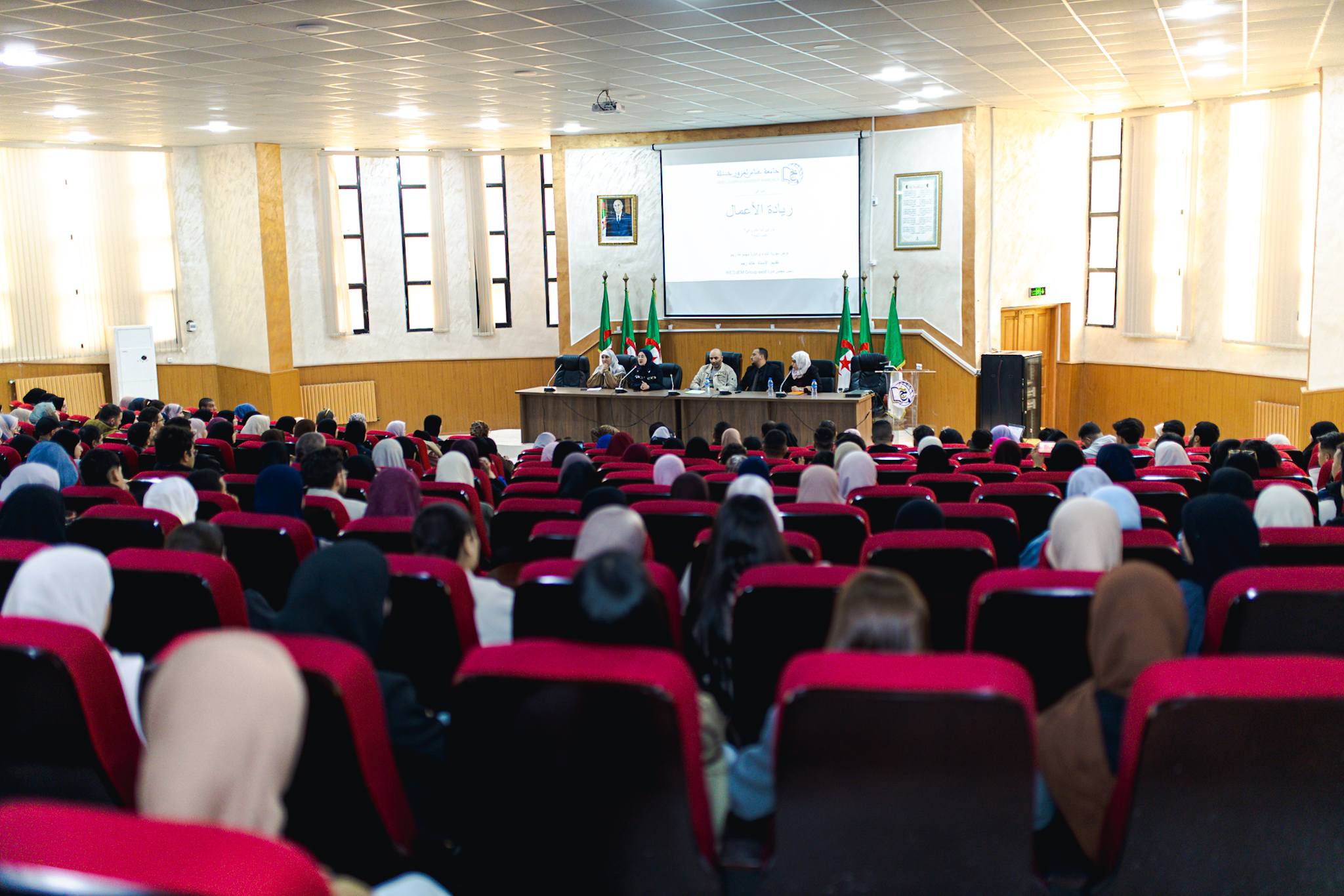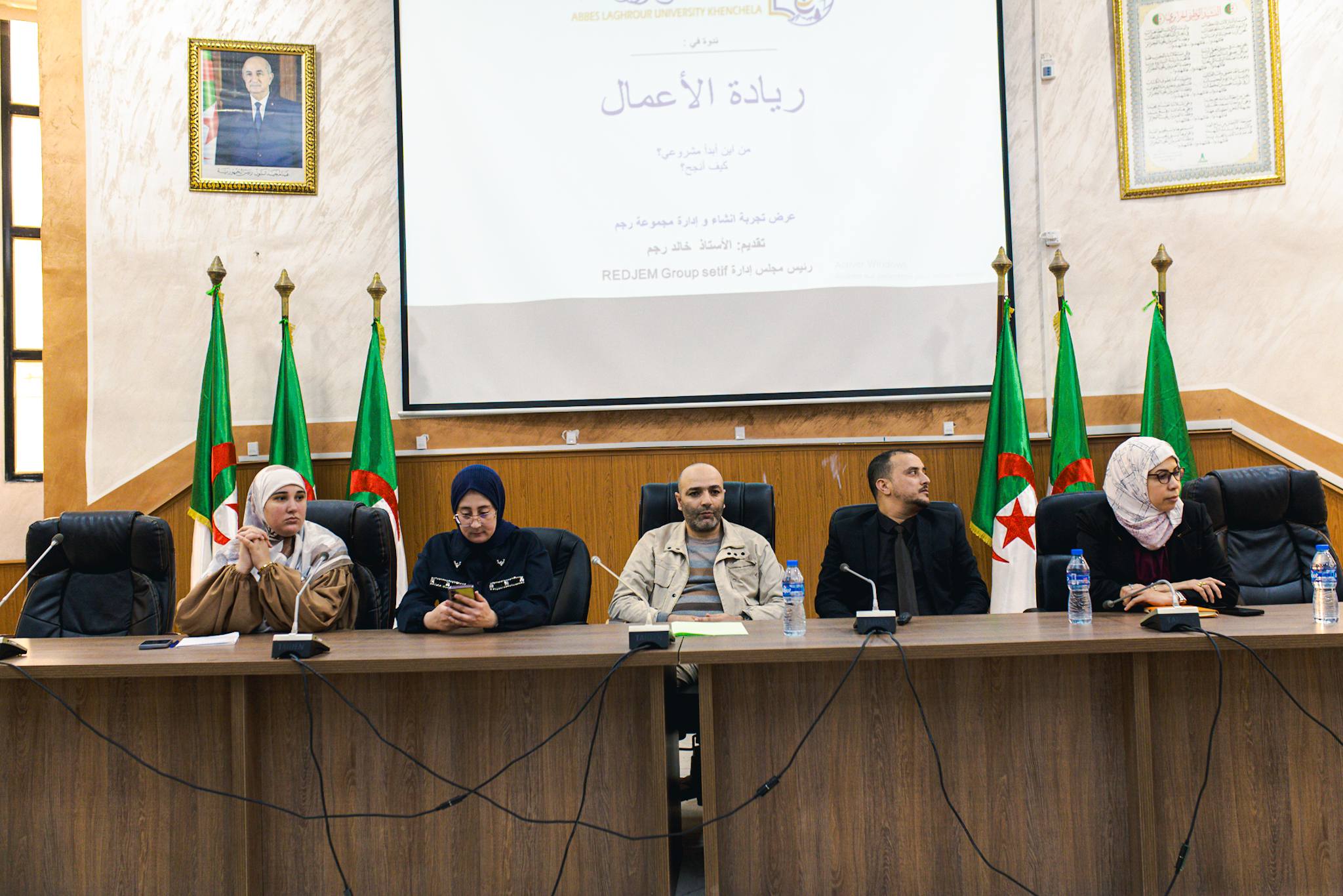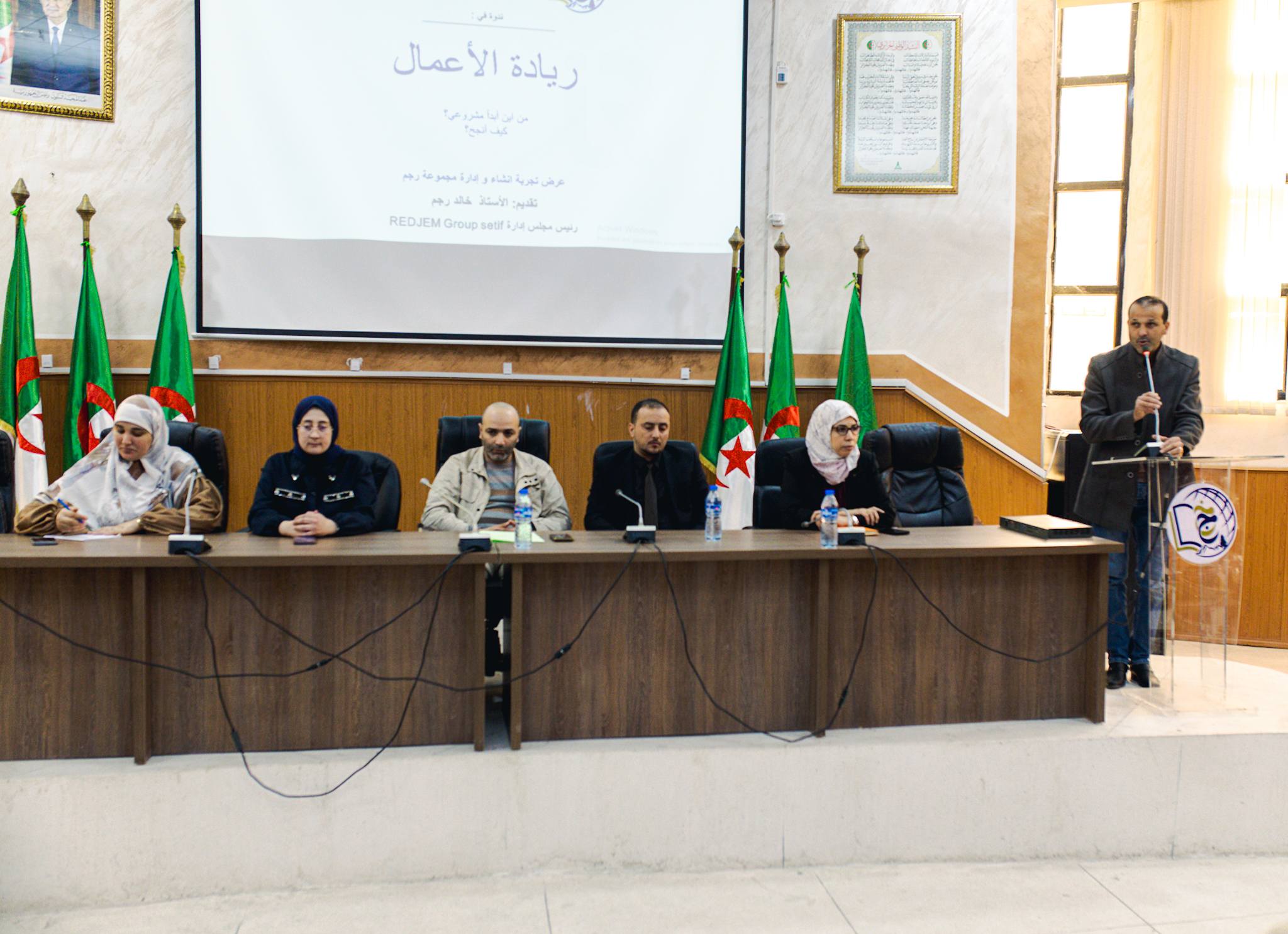 نظمت اليوم 08 أفريل 2026؛ كلية العلوم الاقتصادية والتجارية وعلوم التسيير تحت إشراف السيد عميد الكلية بالتنسيق مع مخبر الاقتصاد الأخضر والطاقات المتجددة ومخبر التنمية المستدامة والمؤسسات الناشئة إلى جانب حاضنة أعمال الجامعة، مركز دعم المقاولاتية، مركز دعم التكنولوجيا والابتكار، نــدوة في ريادة الأعمال – عرض تجربة إنشاء وإدارة مجموعة رجم، برئاسة الدكتورة بوزيدي هدى وتأطير الدكتور خالد رجم من جامعة سطيف ومدير مجمع رجم.