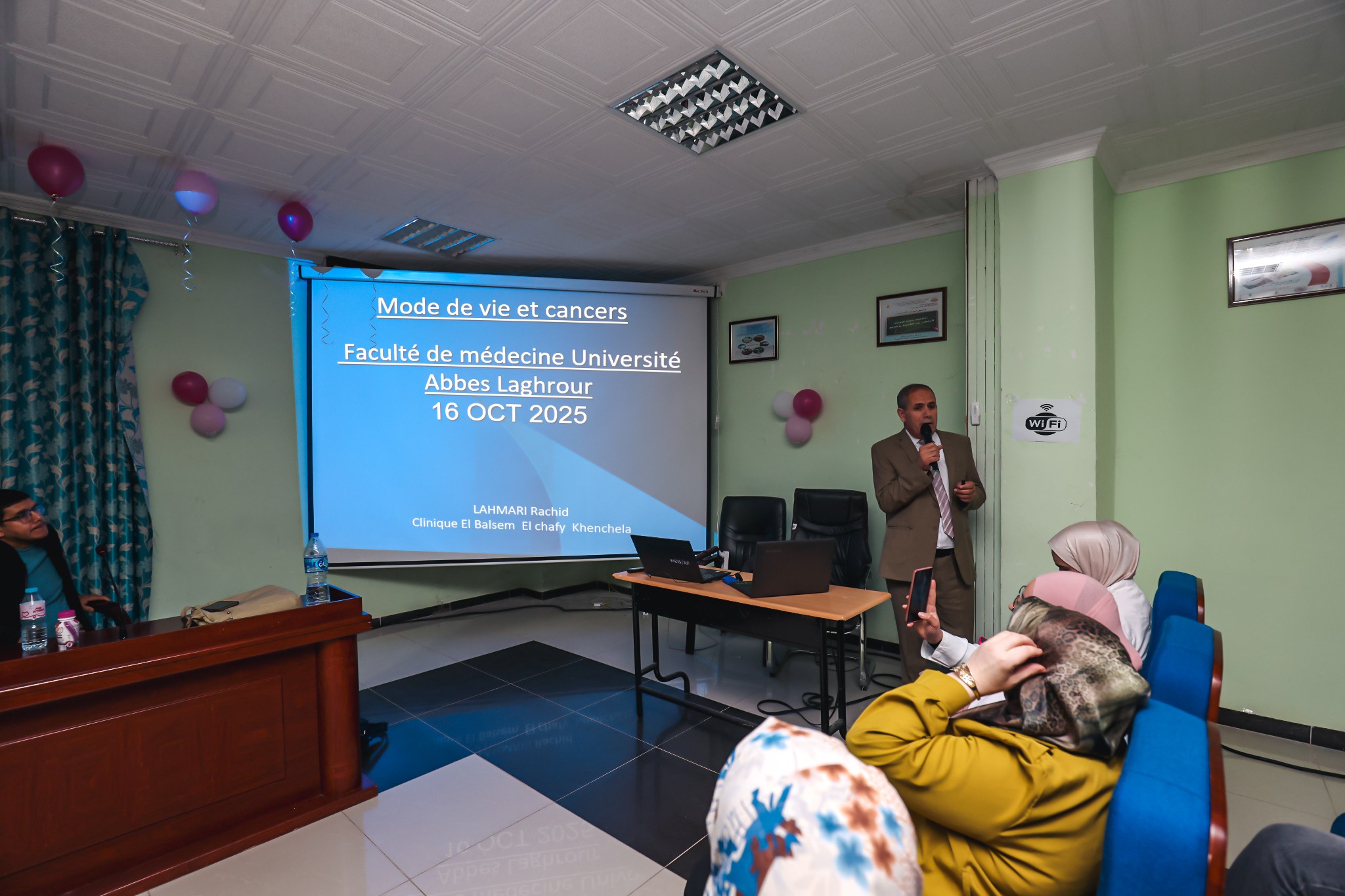 نظمت اليوم 16 أكتوبر 2025؛ ملحقة الطب ونادي Med inspire إلى جانب المديرية الفرعية للأنشطة العلمية والثقافية والرياضية إضافة إلى وحدة الطب الوقائي بجامعة عباس لغرور خنشلة، وبالتنسيق مع عيادة البلسم الشافي يوما_تحسيسيا حول سرطان الثدي.
