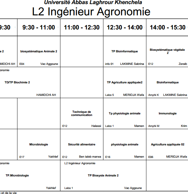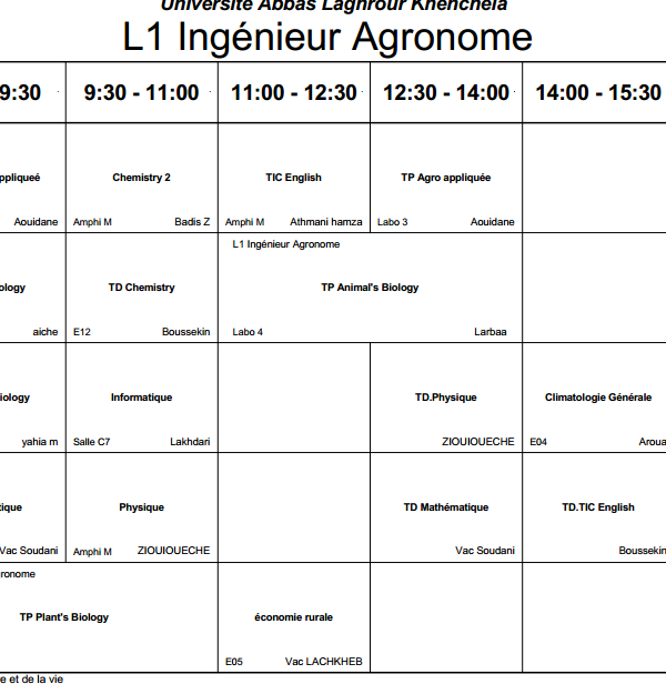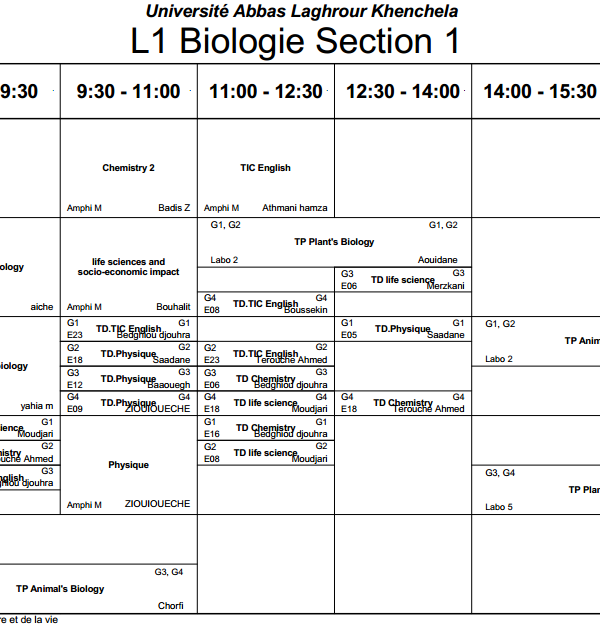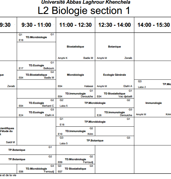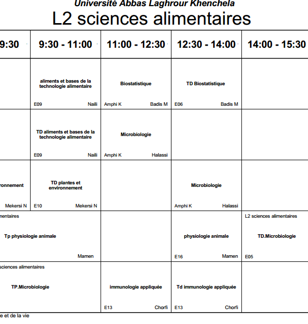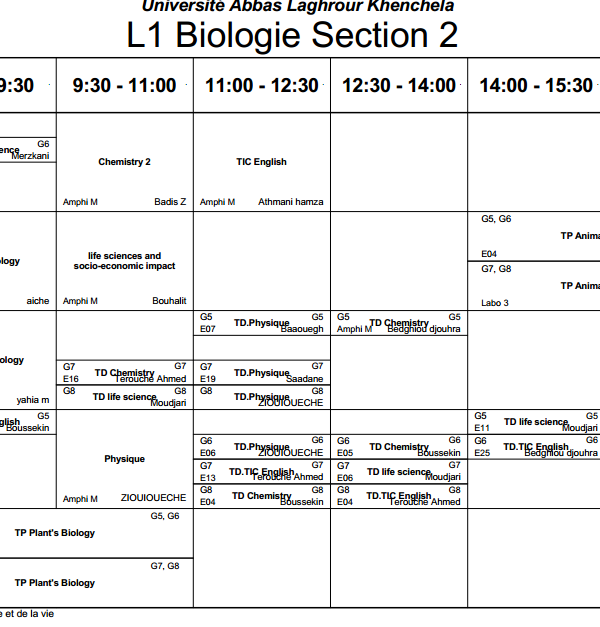 برنامج الدراسة الأسبوعي طلبة نقطة التكوين لغة فرنسية معدل